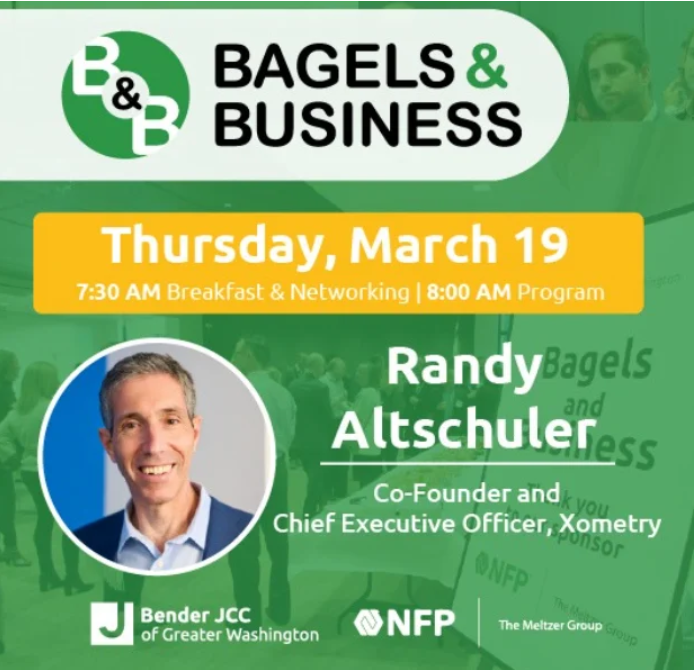 Bagels & Business is an opportunity to network and hear how local business leaders attain success in their fields. Bagels & Business on Thursday, March 19th features Randy Altschuler, CEO and co-founder of Xometry, the global AI digital marketplace that is rapidly transforming manufacturing and helping companies create resilient supply chains. As an expert in the application of Artificial Intelligence, Randy also serves on the Board of Directors for OpenLane (NYSE: KAR), a leading operator of digital marketplaces for wholesale used vehicles.