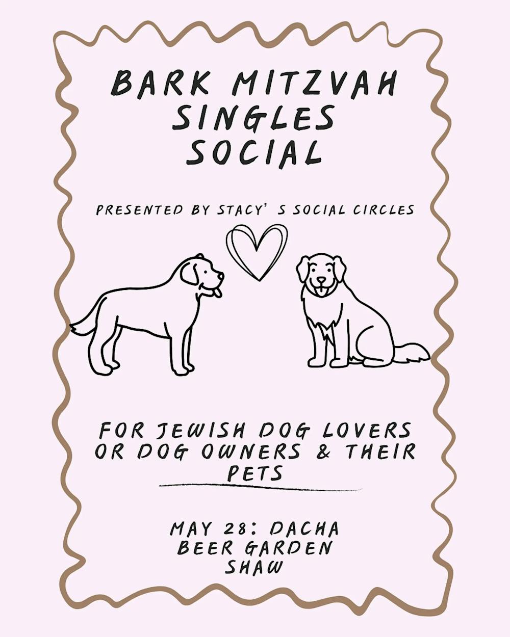 🦮Looking to meet someone who loves dogs as much as you do? Join us for a one-of-a-kind social designed for dog lovers ready to connect in a fun, low-pressure way. Register here: https://www.eventbrite.com/e/bark-mitzvah-singles-social-for-jewish-dog-owners-dog-lovers-their-pets-tickets-1987351625209?aff=oddtdtcreator&keep_tld=true Join Stacy’s Social Circles for Bark Mitzvah Singles Social—a playful, curated meet-and-mingle for Jewish singles where you and your dog can mix, mingle, and maybe even make a match. You’ll rotate through small, thoughtfully grouped circles based on ages and interests designed to spark easy conversation and genuine connection. 🐾Whether you come with your dog or just your love for them, expect a relaxed atmosphere, a night of good vibes, new connections, and lots of happy tails. We will meet at the Dacha Beer Garden in Shaw for at their pup-welcoming space where there will be 🐶Bark Mitzvah "celebration" and paw-ty 🐶A dog-friendly patio atmosphere 🐶Dogs get free pup cups 🐶$2 discounts on all Tito's cocktails all night for yappy hour Check in is at 6:00 PM, we will begin socializing by 6:30 PM!