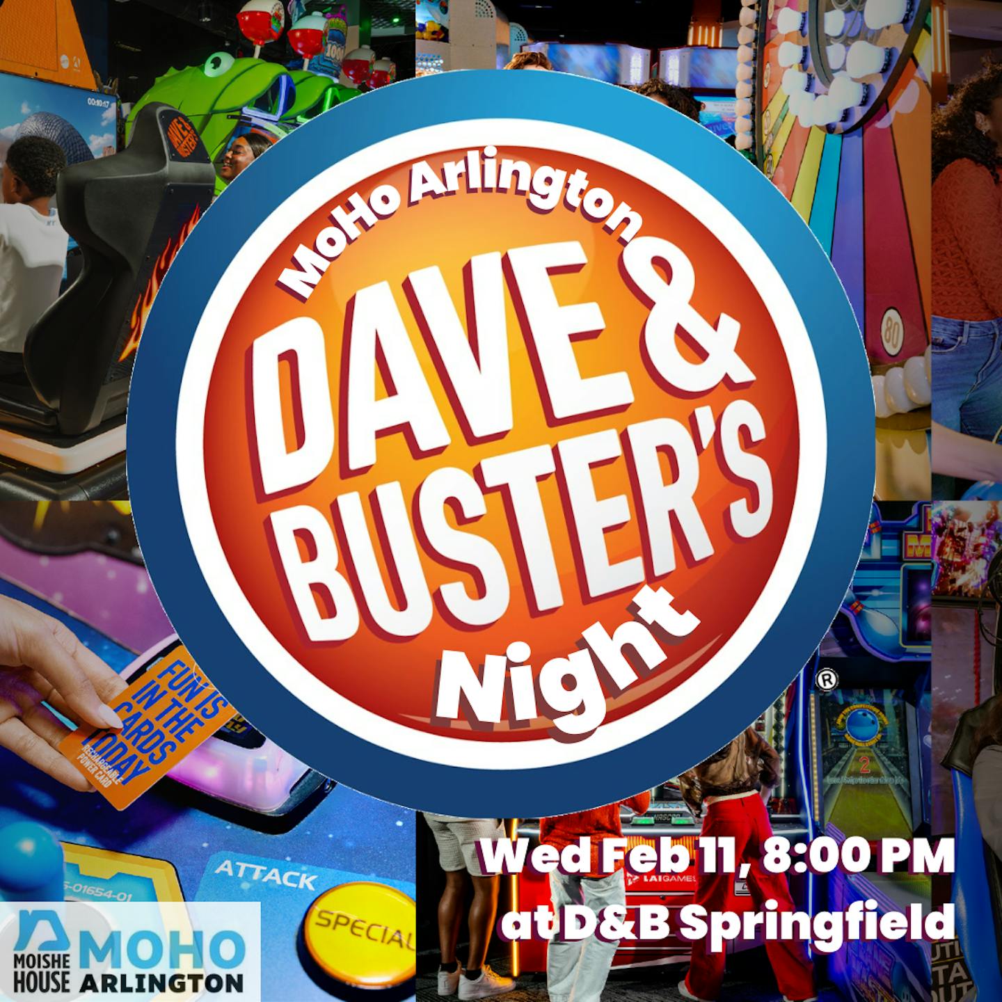 Our return to Dave and Busters in Springfield Mall. We’ll provide some initial cards so we can all play some games for half-priced Wednesday! First one to beat us at pop-a-shot gets a high five! How about we have a fun night at the arcade, deal or no deal?
