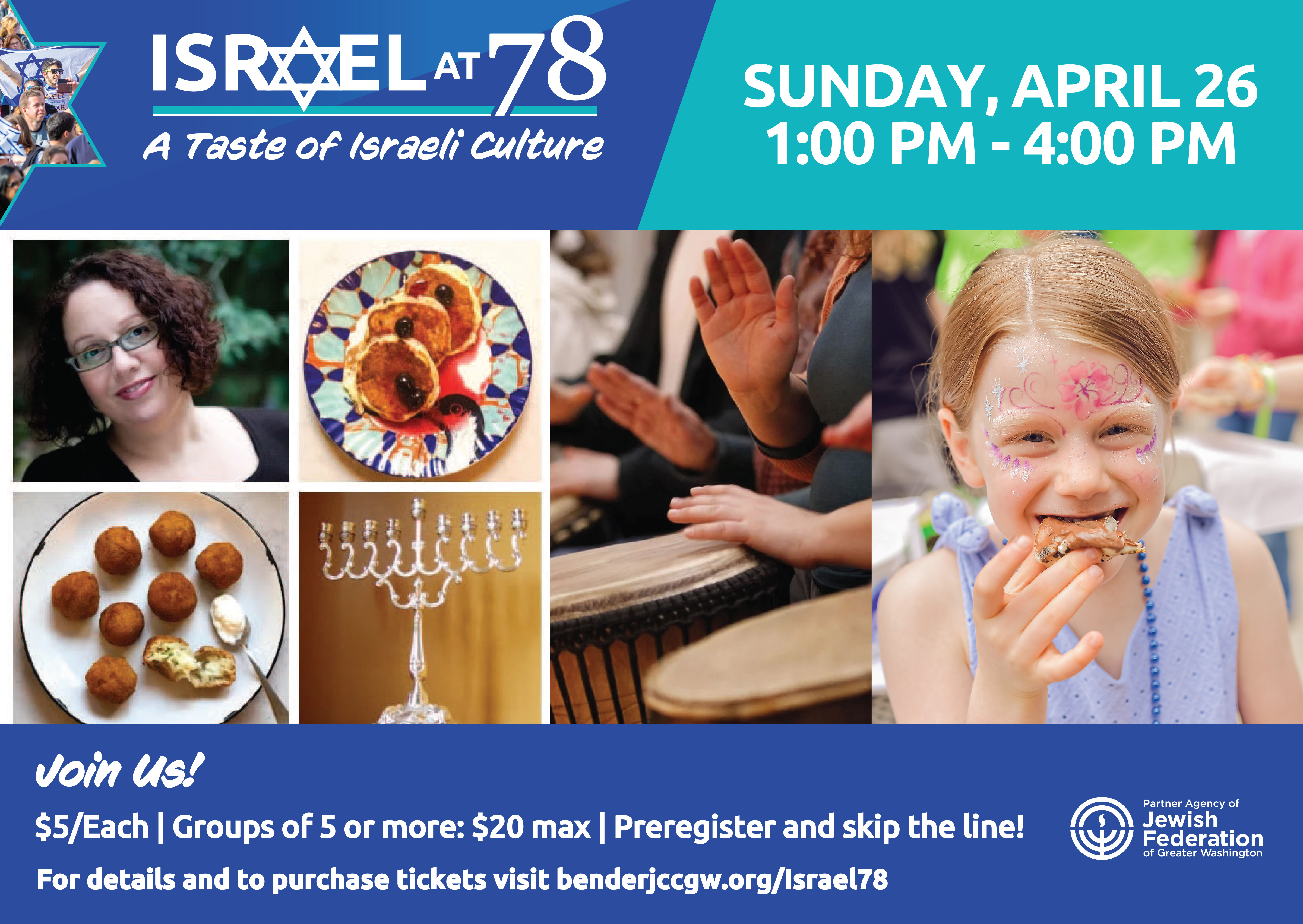 This year, our Israel Day is taking on a fresh, curated format—smaller, more intimate, and packed with hands-on experiences. It’s not a carnival, but it’s still full of fun, flavor, and excitement for the whole family!ISRAEL AT 78: A TASTE OF ISRAELI CULTURE! Celebrate Israel in a whole new way! This year, our Israel Day is taking on a fresh, curated format—smaller, more intimate, and packed with hands-on experiences. It’s not a carnival, but it’s still full of fun, flavor, and excitement for the whole family! Your ticket includes access to all event activities, including our interactive workshops. Workshops (30- minute sessions): Taste of Israel – Falafel Cooking Demo and samples with Chef Vered Guttman One pita, many places! Celebrate Israel’s 78th birthday with a lively cooking demo with Chef Vered Guttman. Vered will show how to build the perfect falafel sandwich while exploring the ingredients that make it so special. Rhythms of Israel – Drum Circle Led by Shaliach Yoel Join this lively drumming circle led by Shaliach Yoel where participants learn traditional rhythms and make music together Landscapes of Israel – Flower Crown Making Led by Shlicha Maya  Roots & Blossoms is an interactive workshop led by Shlicha Maya where participants design their own flower crowns inspired by Israel’s natural beauty and traditions.  Available all day: • Israeli Dance: Learn and dance together • Kid Zone: Enjoy face painting, bouncy houses, fairy hair, arts & crafts • Food: Purchase pizza, falafel, and other snacks from Ben Yehuda and Tovavi Falafel