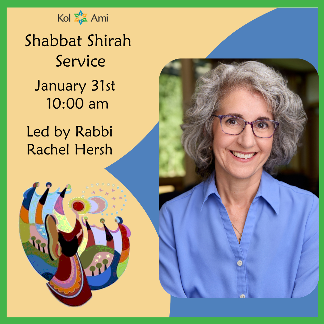 Join us for Shabbat Shirah, the “Shabbat of Song,” with guest clergy Rabbi Rachel Hersh. Experience a lyrical and soulful morning of prayer, meditation, and song. Everyone is invited to stay for a potluck kiddush following the service. For information on virtual service, please contact us.