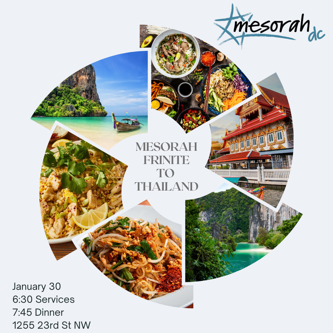 J Station Presents: Thai Friday Nite Services: 6:30 Dinner: 7:45 ***Please note: Vegetarian/Vegan requests must be submitted by Wednesday, otherwise we cannot guarantee sufficient quantity.*** To join us for Shabbat lunch, please rsvp at https://mesorahdc.org/shabbat