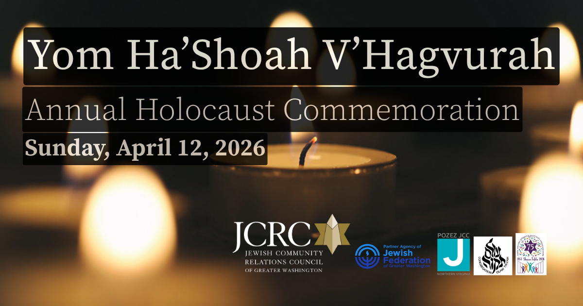 Join us in Fairfax on Sunday, April 12 at 1:30 PM for our annual Yom Ha'Shoah Commemoration that brings the DMV community together to honor the victims, survivors and family members living in the region. Holocaust survivor Irene Fogel Weiss, a Northern Virginia resident, will be our keynote speaker. The exact location will be provided to registrants closer to the event date. Space is limited. The program will also be recorded and posted on our YouTube channel for those who are unable to attend.